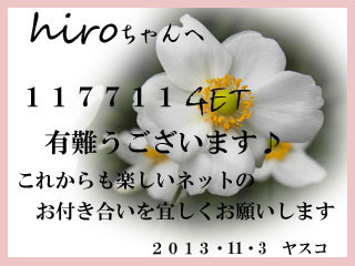 20012私から貴方へ![]() 我が家のキリ番GETありがとう♪〜 |