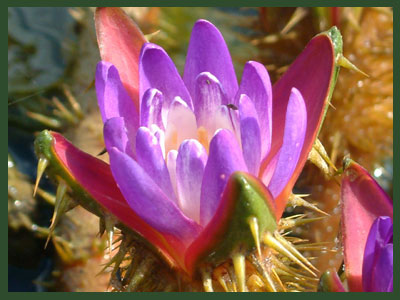棘のある、直径2m近い大きな葉を広げて咲く、一年草です。